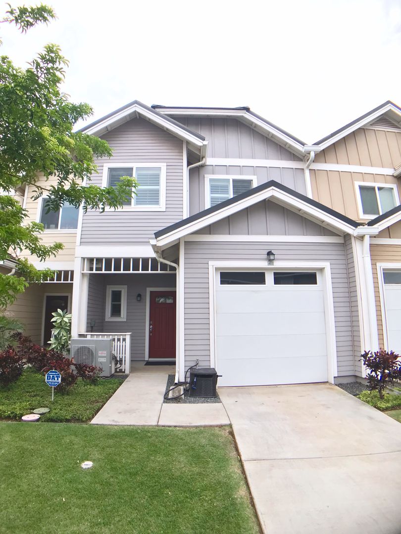 AVAILABLE NOW -- HI Roots Realty presents this two-story 3 BR, 2.5 BA with 1-car garage and 1 tandem stall parking townhome in Kapolei. This spacious high ceiling home features split ac, ceiling fan, stainless steel appliances, plantation shutters throughout, washer/dryer in unit with fenced yard. Laminate flooring on ground floor, carpets upstairs. Complex amenities include pool, playground and walking/jogging path. Conveniently located near Kapolei Village Shopping Center, restaurants, Foodland, shopping, schools, small businesses and more!